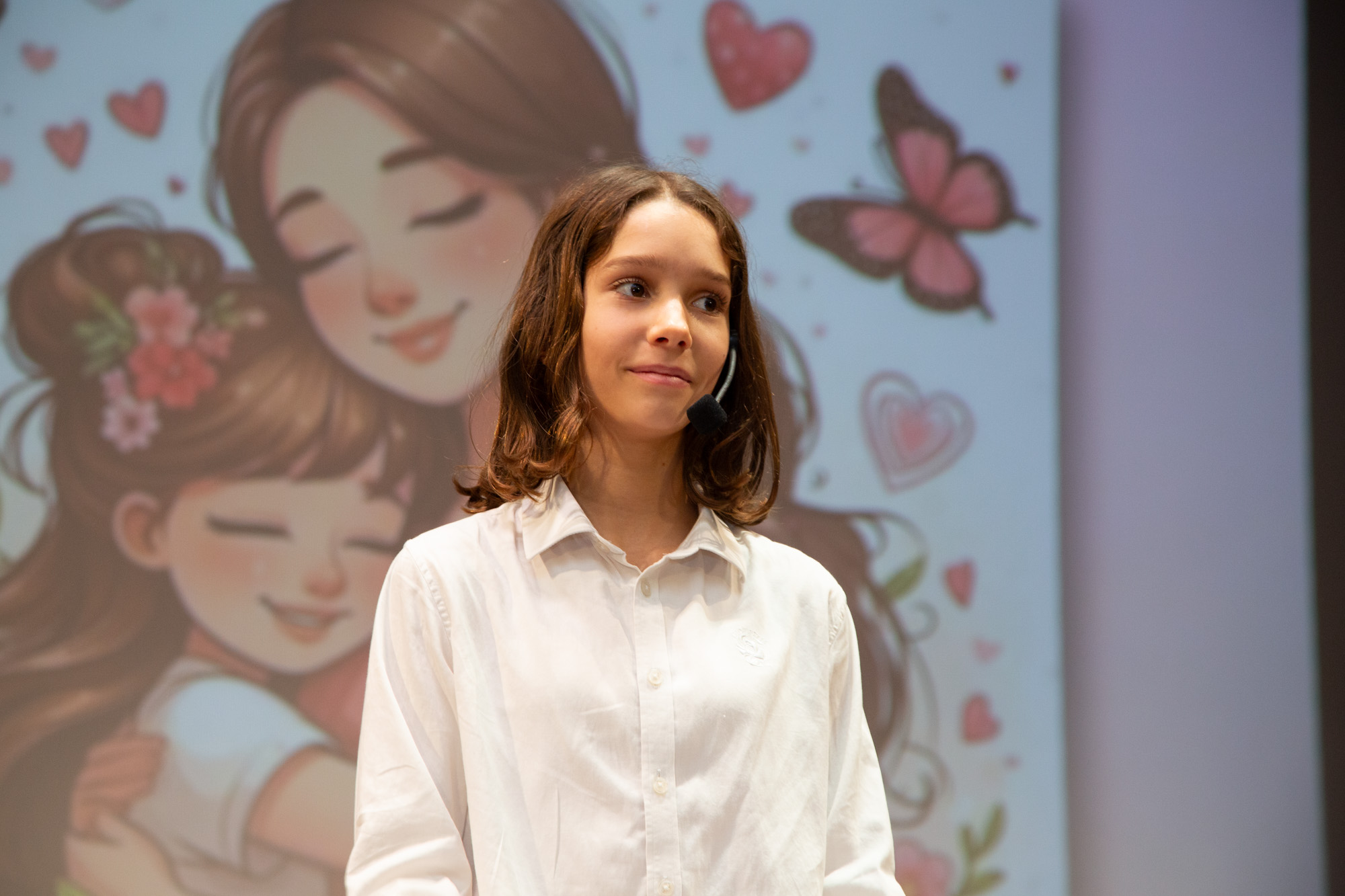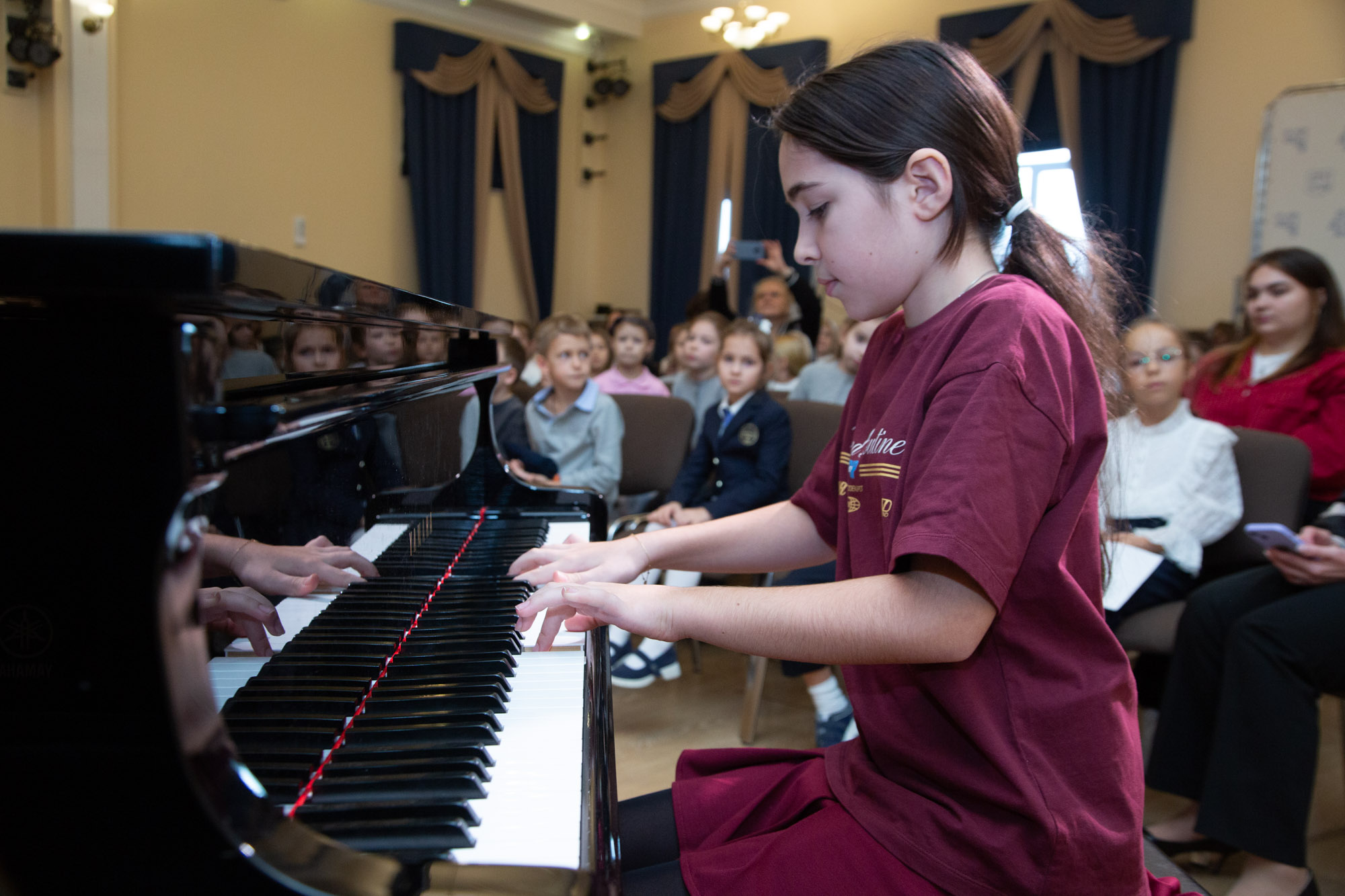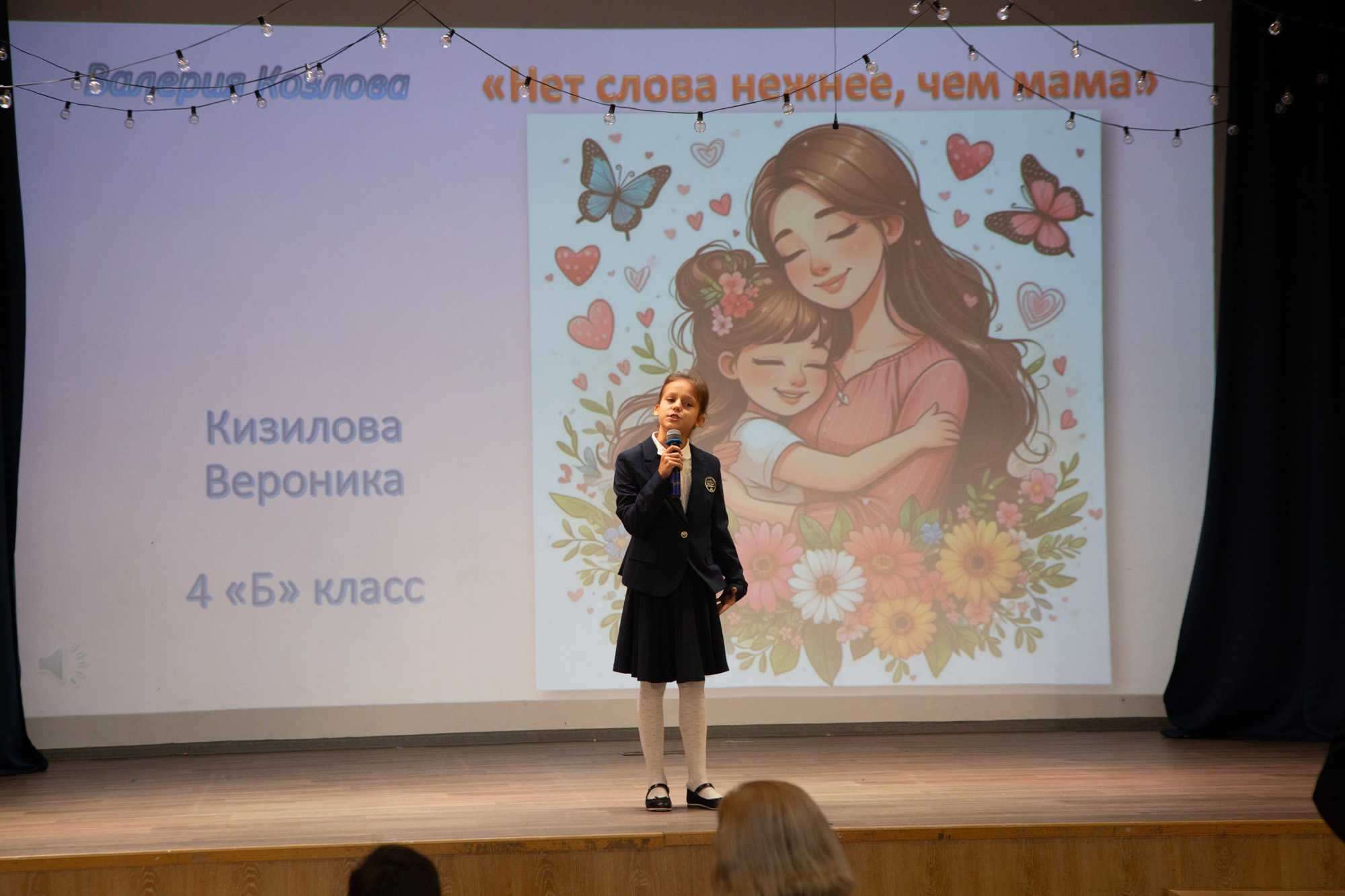 Юные участники читали трогательные стихи, посвящённые мамам, а атмосферу дополняла живая музыка: ученицы нашей школы исполнили нежные мелодии на фортепиано.