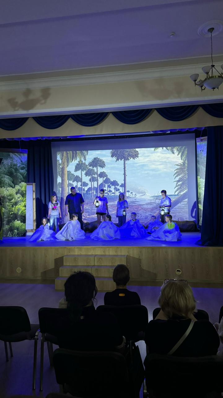 Все 10 дней мы готовились к театрализованному представлению для родителей. Учили роли, репетировали, спорили… И вот, 14 июня, на школьной сцене состоялась премьера! Рябинин вместе с будущими пятиклассниками «провели» зрителей по затерянному миру. Роли малышей – динозавриков исполнили самые маленькие участники летней смены – ученики 0-2 классов. За теневой театр и ростовую фигуру диплодока отвечали ребята из 3-4 классов.