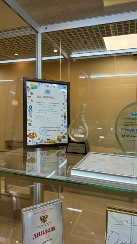 Наша школа не первый год сотрудничает с банком и первое, что мы увидели в витринах фойе, кроме большого количества кубков, была благодарность от Школы права и экономики. В банке очень серьезная система безопасности, вход только по спискам и паспортам, проход через специальные шлюзы. И все-таки мы смогли заглянуть в операционную зону, и увидеть, как работают с клиентами банковские работники.