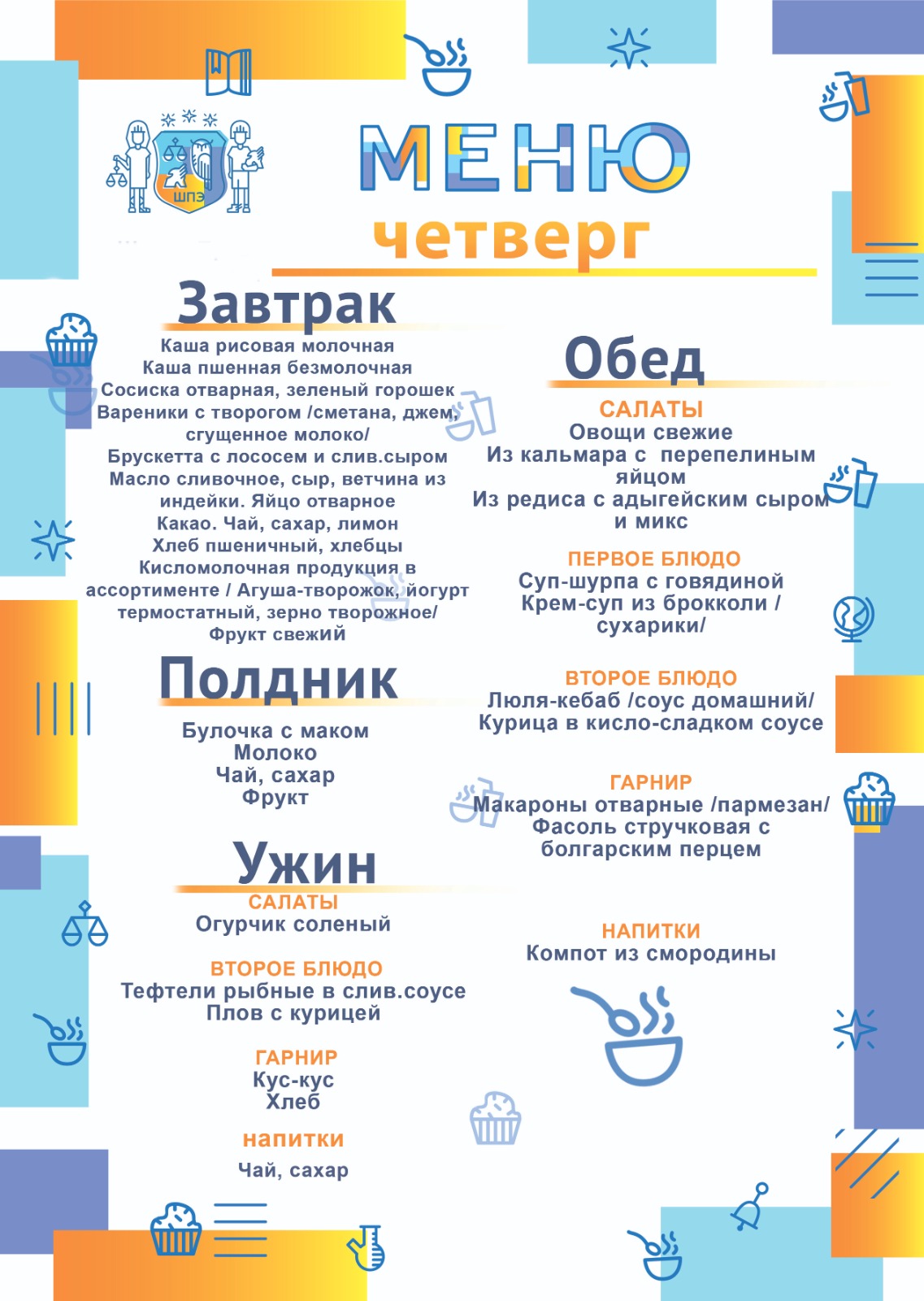 Обучающиеся школы получают полноценные, по-домашнему вкусные завтраки, обеды полдники и ужины, приготовленные в школьной столовой. Меню школьной столовой разработано с учетом индивидуальных особенностей учеников школы и отвечает запросам самых требовательных ценителей изысканной пищи. Поставка продуктов осуществляется российскими производителями сельскохозяйственной продукции, не содержащих ГМО.