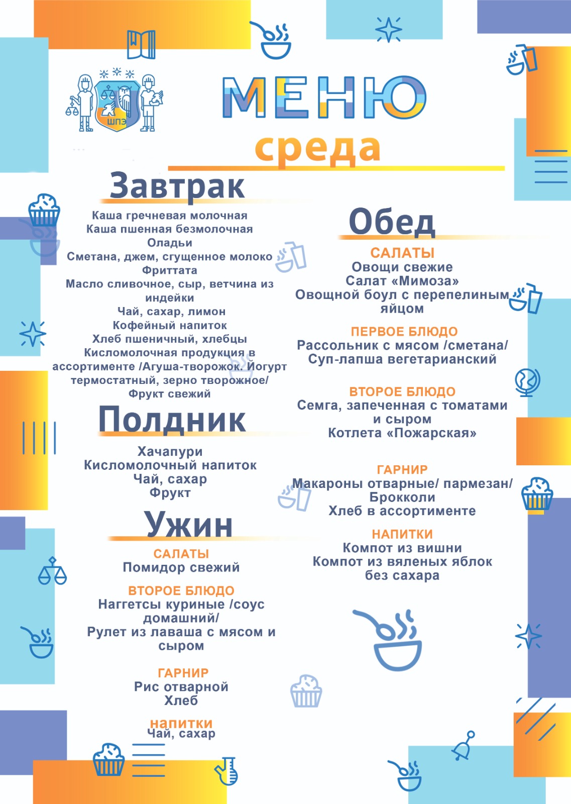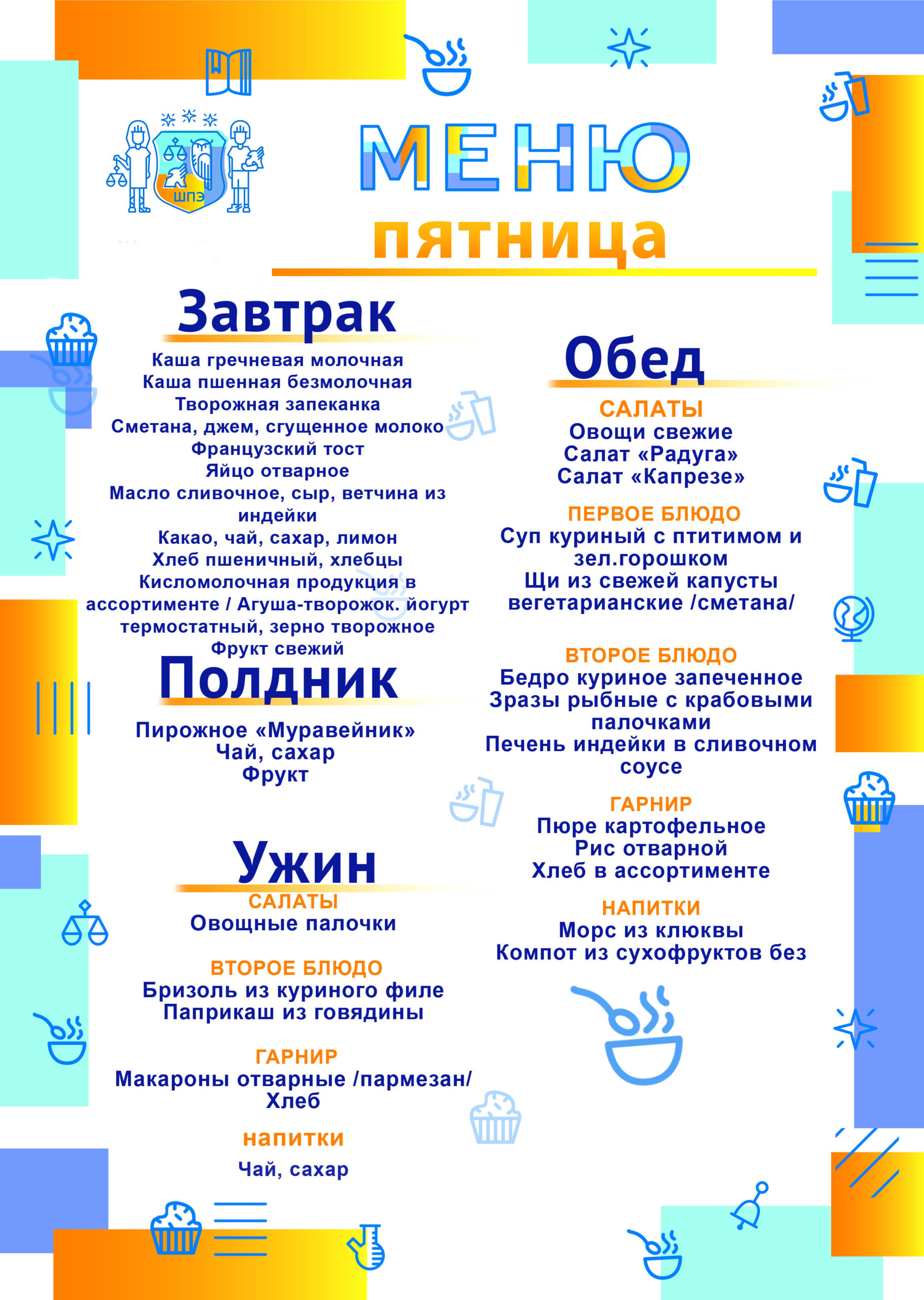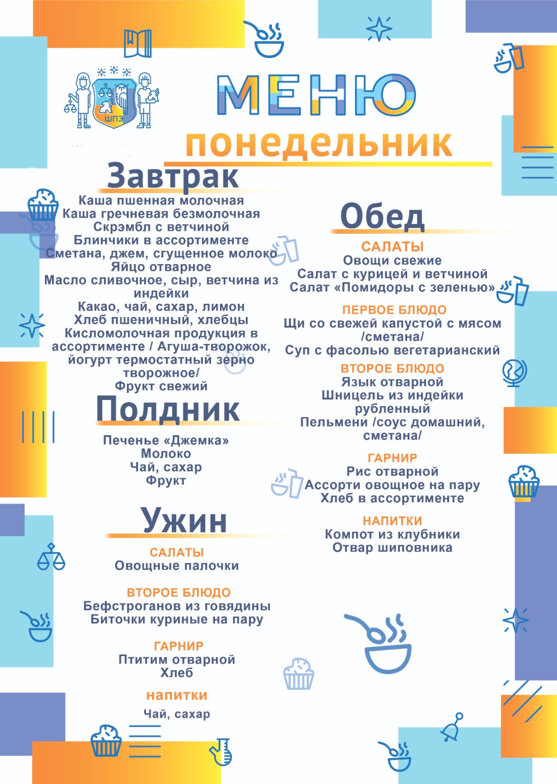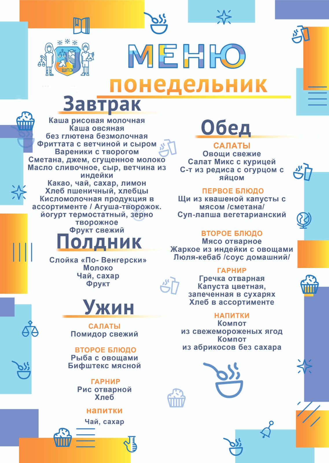 Родители хотят видеть своих детей здоровыми, успешными, растущими, сильными и активными. Ритм жизни школьника весьма динамичен: общеобразовательные уроки первой половины дня, занятия дополнительного образования, участие в проектной деятельности и жизни школы. В таком режиме ребенок живет всю неделю. Уверенность в своих силах, успехи в учебе, концентрация внимания, а также способность к запоминанию, имеют прямую связь с рационом питания. Рациональное питание обучающихся является одним из важных условий создания здоровьесберегающей среды в общеобразовательной организации. Школа права и экономики, обращает особое внимание на закладку фундамента хорошего здоровья и вопросу питания отводим особую роль.